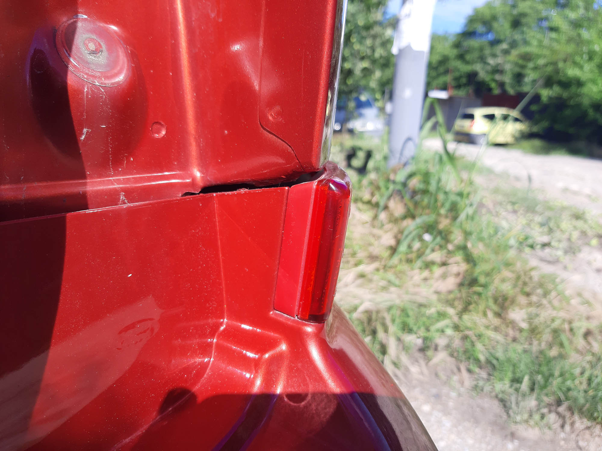При мен след силният удар отзад левият светоотразител в долната част на бронята стана на три парчета, но го залепих, китосах със стъкловлакнест кит, изшкурих и го облепих с лепенка, която е досущ светлоотразителна и почти не се различава от оригиналната част, но ако не намеря читава такава част ще лакирам с двукомпонентен лак лепенката, защото повърхността и ще се скапе сравнително бързо и така ще изкарам няколко години
