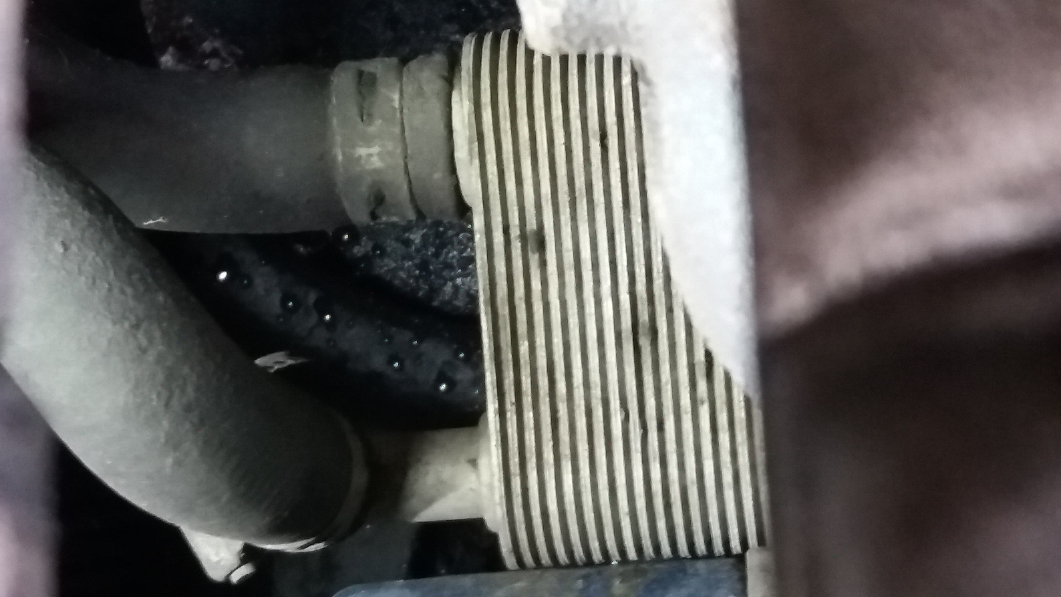 Ако проблема е само парното, има някаква вероятност да е запушен от каране с кофти антифризи водно-масления охладител. На снимките е под всмукателният колектор. Може да се изключи със свързване на двата маркуча с тръбичка и да се пробва.