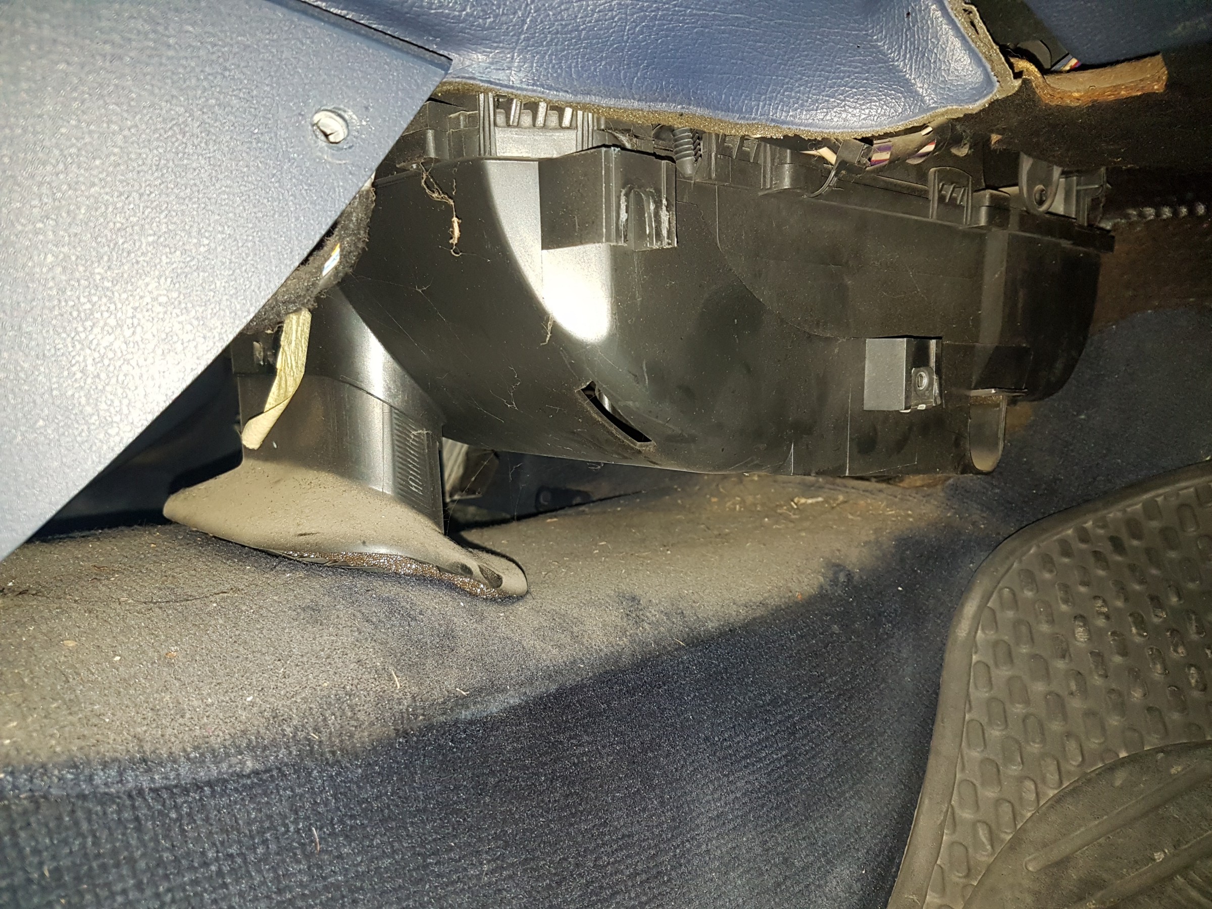 Днес отворих пластмасите, които са долу в краката на шофьора и пасажера, където е предполагаемото място на радиатора на купето, но няма и капка, която да подсказва за течове.