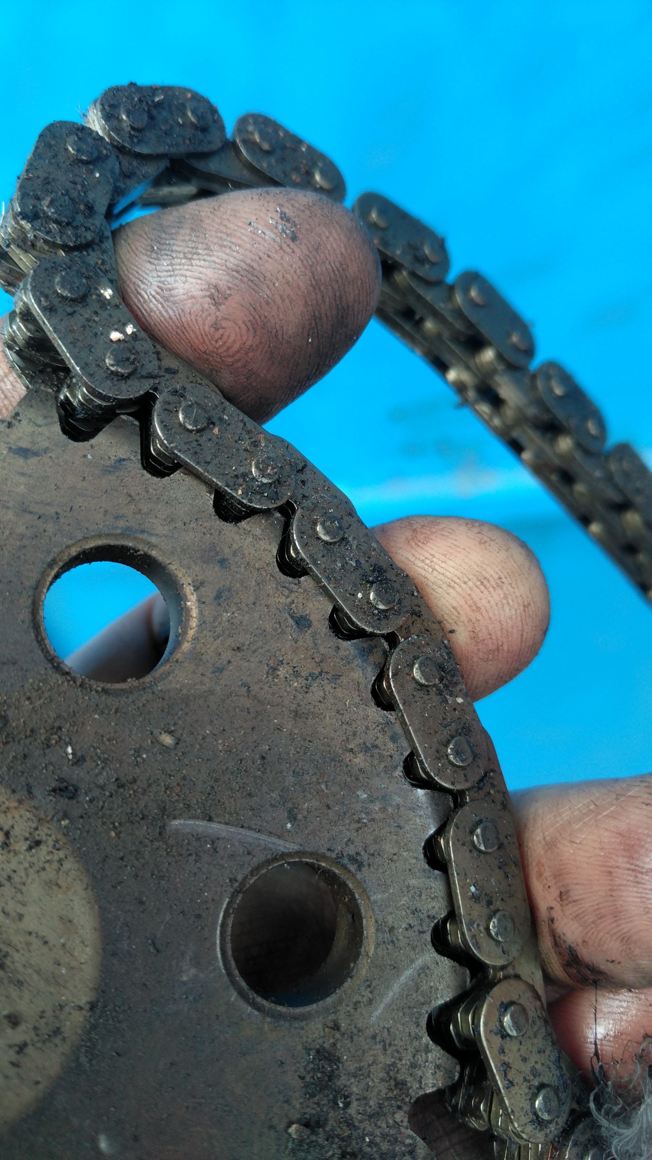 Новите вериги не са като старите - с ролки и натоварването се понася от краищата на съединителните оси. Правят се с пластини и се разпределя срязващото усилие по дължината на осите и ширината на зъбите. Точно днес сваляхме капак на клапаните на УАЗ-ка 2.7 литра от 2017 и веригата изглежда по същият начин. Мисля си, че ако наредят пластините през една, ще има още по-добро разпределение - в 7 точки, вместо в 4, което ще намали още повече вероятността от скъсване.