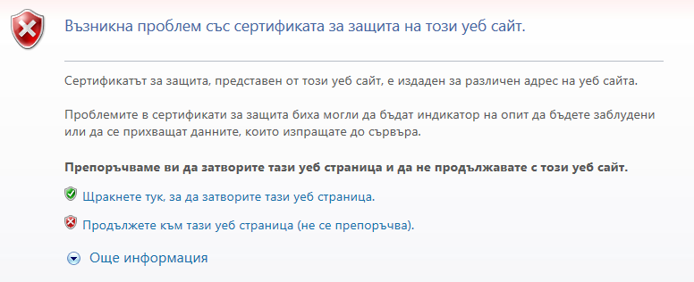 Влиза се трудно в сайта , изписва ми , че сайта няма защита и следват 99 предупреждения, че ще загубя финансови акаунти и т.н. Някой може ли да го фиксне ?