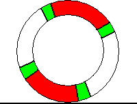 Значи в приложената картинка съм отбелязал с бяло зоните, в които колелото се върти свободно (разбирайте с 1 пръст!). В червено са зоните, в които се налага да въртя колелото с две ръце, за да го помръдна! В зелено са зоните, където колелото вече започва да задържа или да отпуска. Това при леко дръпната ръчна спирачка. Спокойно мога да кажа, че същия резултат имаше и преди да разменя барабаните или с други думи от лявата страна 3 барабана (с техните си лагери) задържат по един и същ начин, 2 от тях от дясната не правят проблем (третия не е пробван).