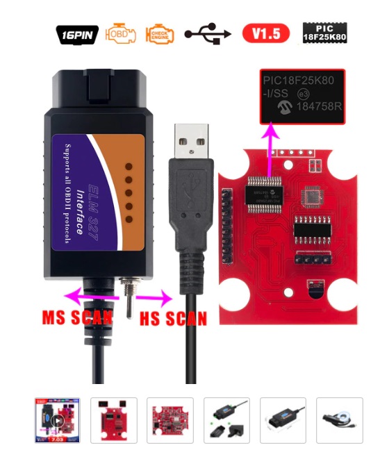 2. ELM 327 с превключвател за MS-CAN и HS-CAN и чип на FTDI