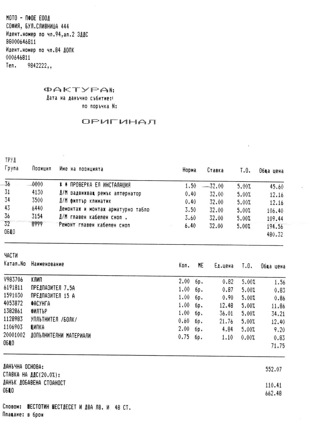 Прилагам фактурата от ремонта. Ако може на някой да послужи за основа.