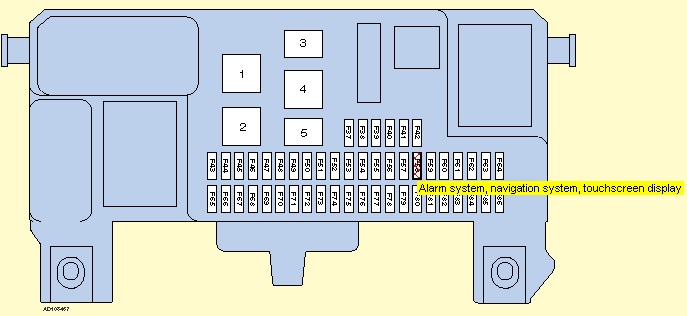 Според AutoData, Sony-то има постоянно захранване от предпазител F4 60A в двигателното, от който се захранват във вътрешното табло F58 15A за самия плейър и F83 10A за CD changer в багажника (ако има такъв). F68 е захранване на мултимедията след контактен ключ.