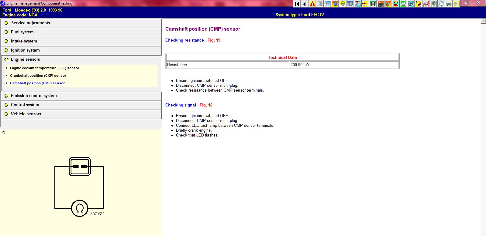 В аутодата дават, че може да се мерне на съпротивление, но с осцилоскоп би било най-точно. Само дето този датчик има по-скоро синхронизираща функция и не е много сигурно, че проблемите ти са от него