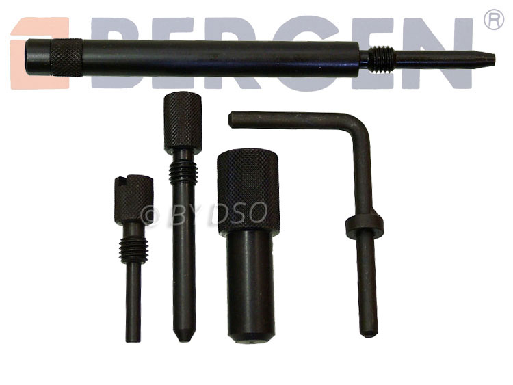 Endura DE се зацепва със специален инструмент - болт с точно определена дължина и форма (най-горното на картинката), навива се в блока на мястото на един болт-тапа под ГНП, за да подпре коляновия вал в ГМТ на първи цилиндър. Разпределителният вал се фиксира с планка в канала на задния край, а помпата - със свредло 6 mm. Слагаш ремъците и обтегачите, стягаш зъбните колела, вадиш всички инструменти и превърташ на ръка с тресчотка почти 2 оборота на коляновия вал. Навиваш болта в блока, докарваш внимателно коляновия вал до упор в болта и проверяваш, дали планката и свредлото влизат по местата си. Ако някое не влиза за малко - разхлабваш зъбното колело и наместваш вала/помпата, докато инструментът влезе на място, после стягаш колелото. Пак вадиш всички инструменти и превърташ близо 2 оборота за нова проверка и така, докато всички елементи си дойдат по местата след фиксиране на коляновия вал. Махаш всички инструменти, затапваш дупката в блока с болта и събираш капаците.alex_noft написа:... Мотора е 1.8 Д 60 кончета 99година Ендура.ДЕ . Благодаря предварително