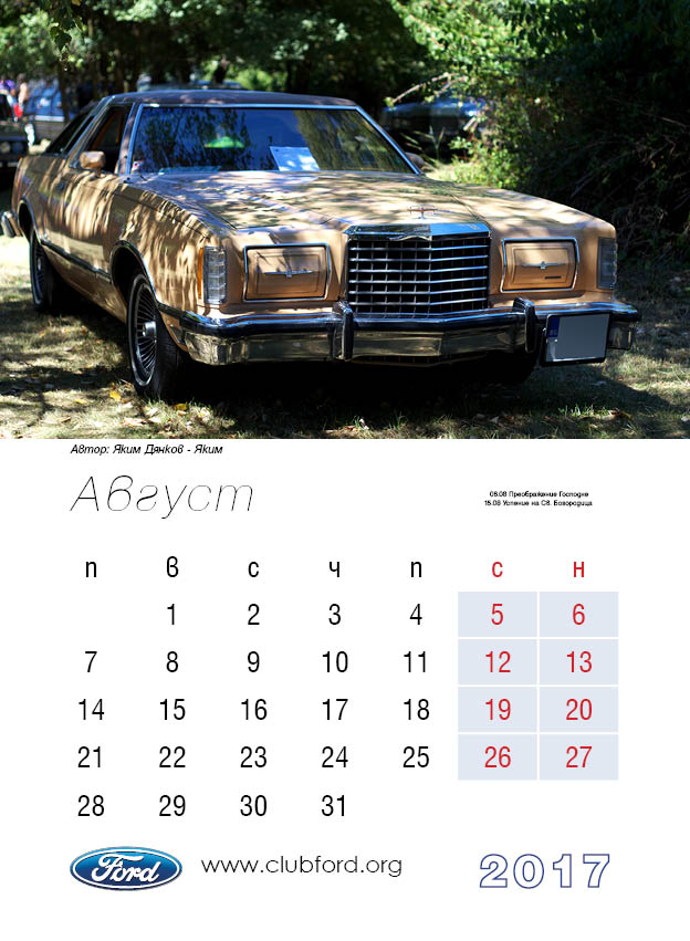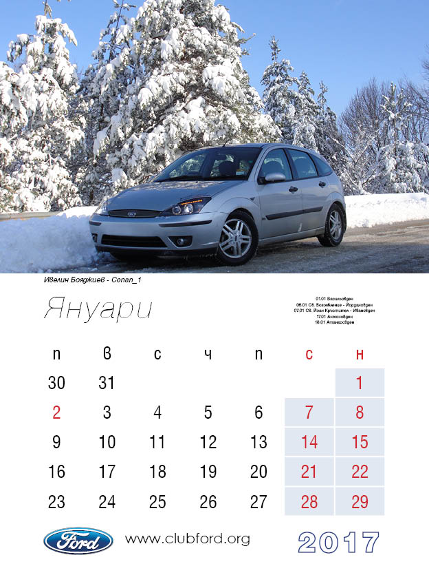 Календар на Клуб Форд България за 2017