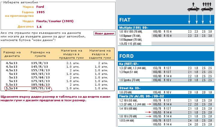 Ще използвам общото име на темата за да питам много важна ситуация с новите ми 4 гуми 205/55/16 на фокуса от профила и подписа, като максималния размер по книжка е 205/50/16(такъв ми е лятото) и е даден 2.2 на всички гуми до 3ма души и до 120км/ч. Не откривам и надали ще открия информация за 205/55/16, а вече съм с тях. Летните 50 ги карах 2.3 отпред и 2.2 отзад, нищо че са 2.2 отпред по книжка (дизел е колата, а те ми писали 2.2 за всички гуми за всички фокуси мк1 3 врати с този размер..)
