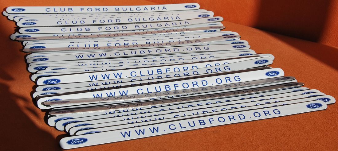 Едната лайстна е с надпис "КЛУБ ФОРД БЪЛГАРИЯ", другата лайстна е с надпис интернет адреса ни "http://www.clubford.org".