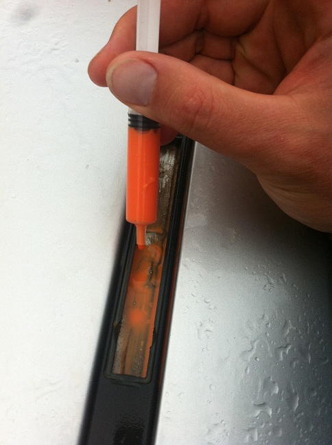 Стигнах до извода,че чоже би влиза вода през покрива под пласмасовите релси(незнам как се казват). Там където има капачки за захващане на багажник. Със спринцовка изтеглих червен антифриз и пуснах там. След което леко се червнееше водата в багажника. Трябва да пробвам с нещо което с по наситен цвят някаква идея?Можете ли да ми кажете как се захващат за покрива? Залепени ли са или по друг начин.
