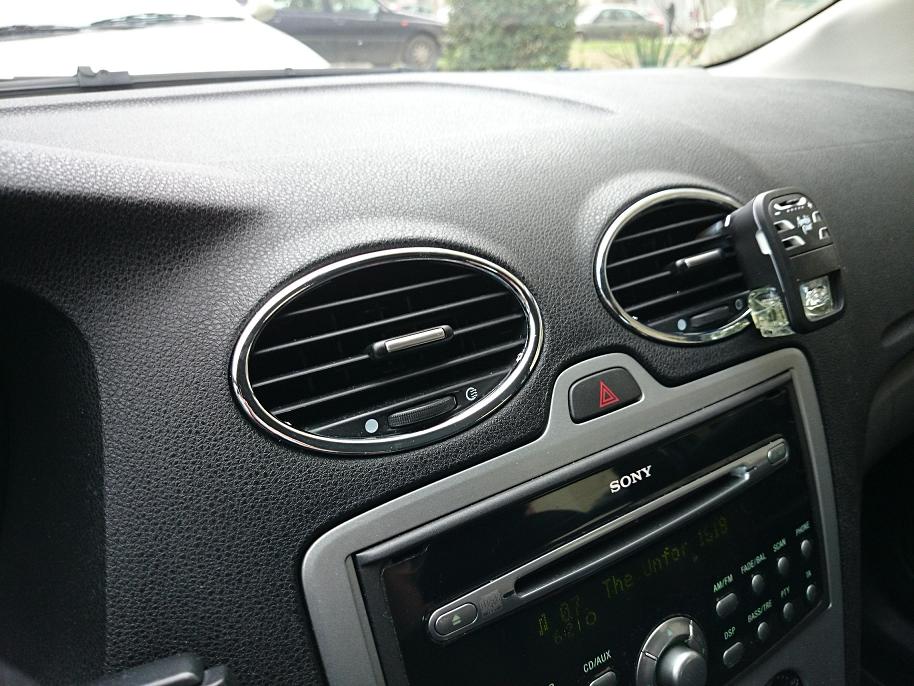 След това дойде ред и на нови, хромирани рингове на въздуховодите. Реших, че оригиналната сива пластмаса не ми е по вкуса, затова ги смених с малко по-лъскави
