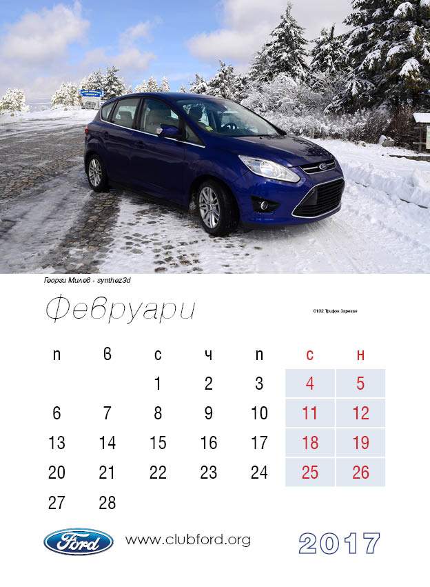 Календар на Клуб Форд България за 2017