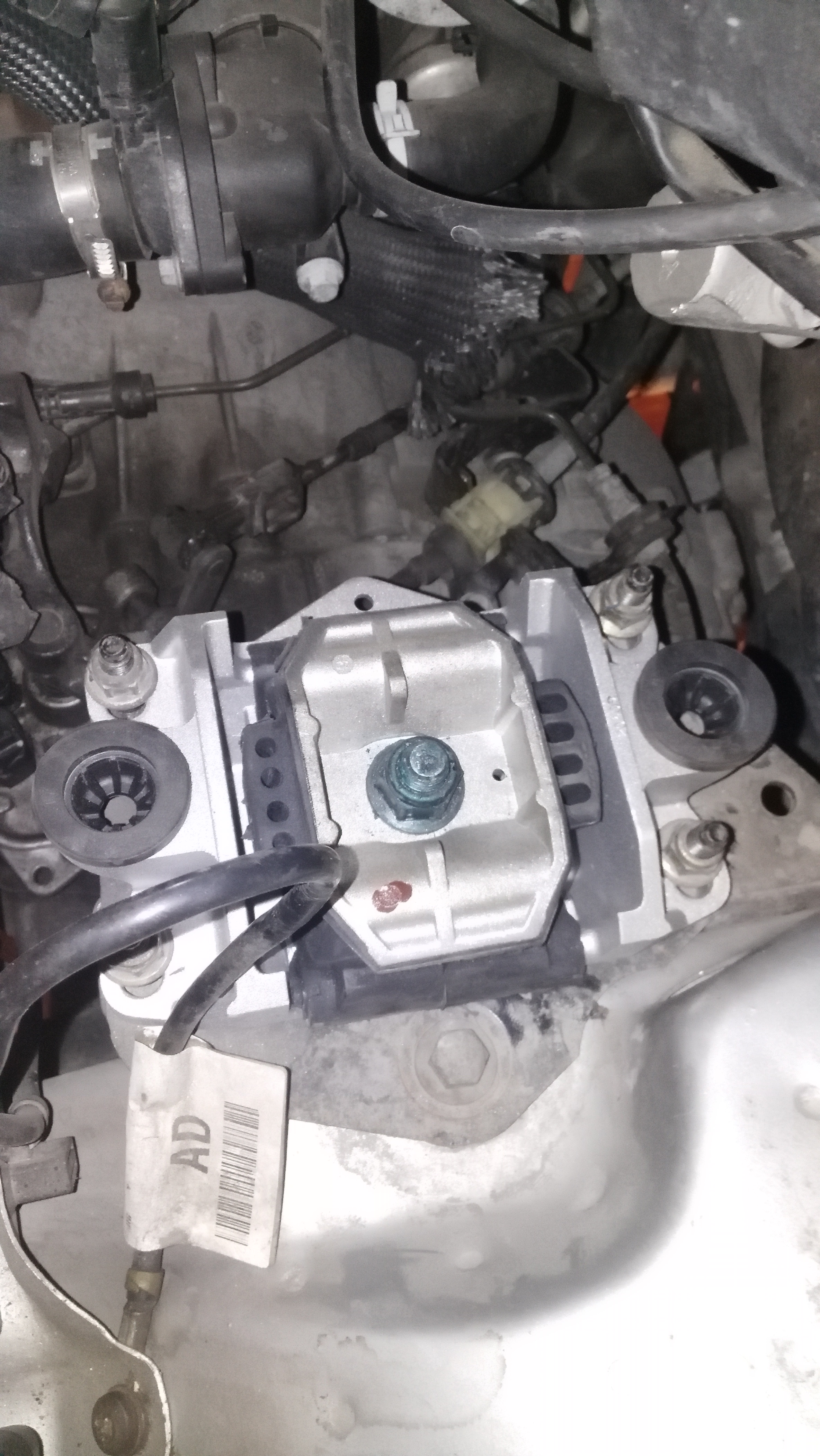 Сменен горен тампон на двигателя и скоростната кутия. Това е последния от трите, които сменям и сега двигателя е кротък