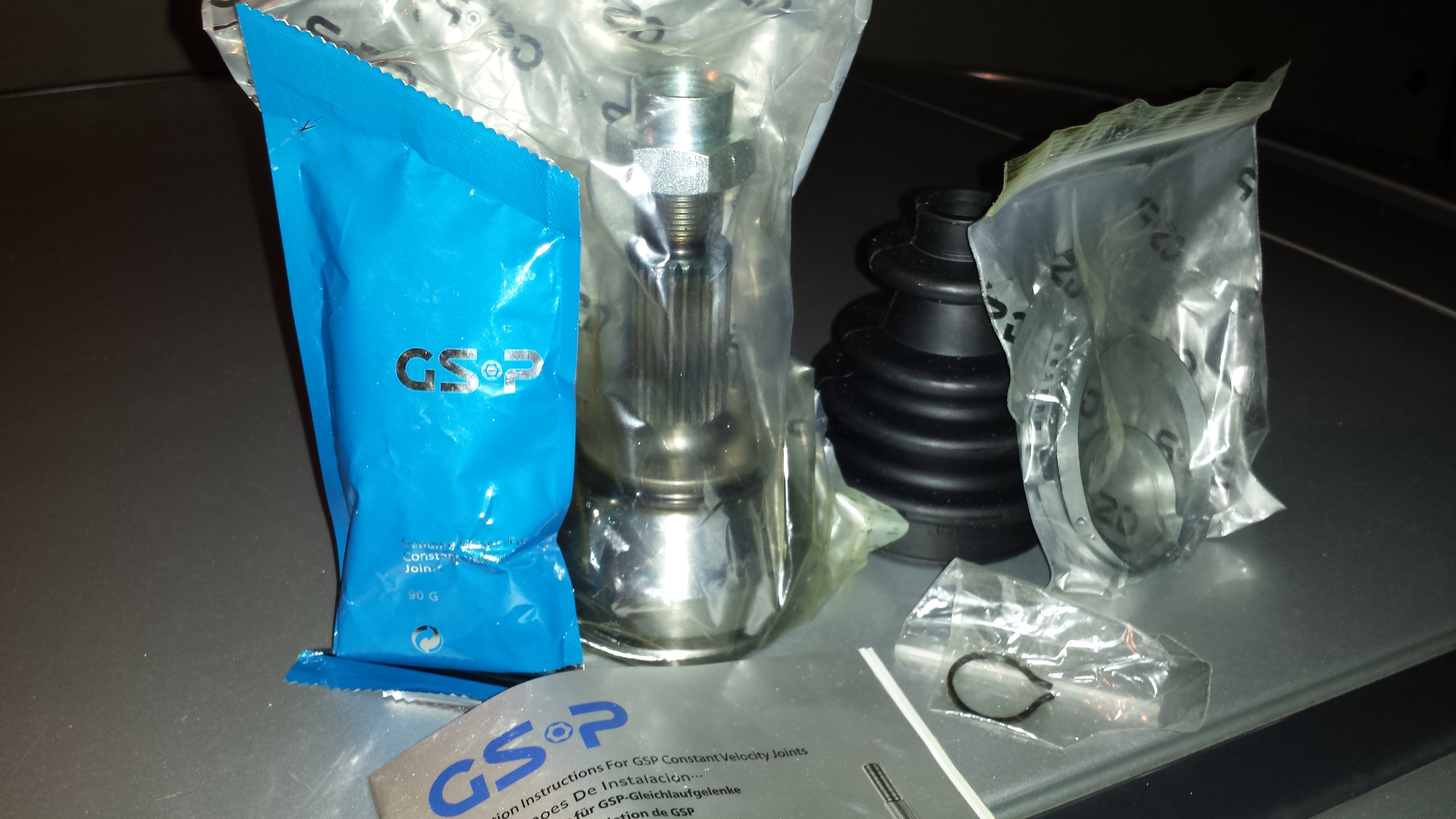 Ето и снимка на единия комплект външно каре GSP. Комплекта в кутията се състои от каре, маншон, скоби, графитна грес и книжка... ->