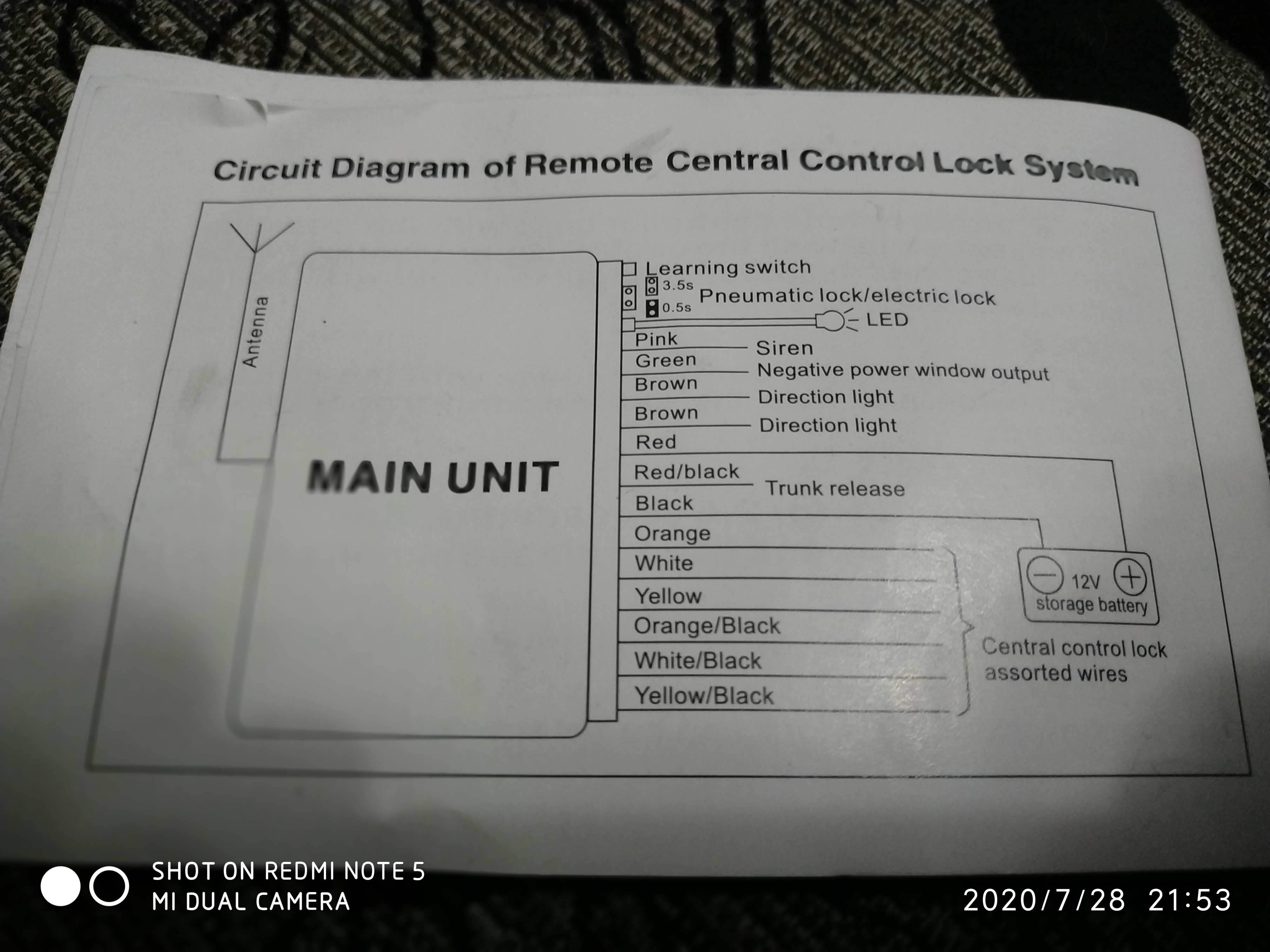 Модулът очевидно е предвиден и за автомобили с независимо заключване на двете предни врати и общо на задните, както и отключване на багажника. С една контролна лампа лесно може да се определи кои проводници "отключват" и кои "заключват". Логиката сочи, че тези без черна ивица извършват едното действие, а маркираните с ивица - другото. Въпрос на проверка с уред или пробна лампа.