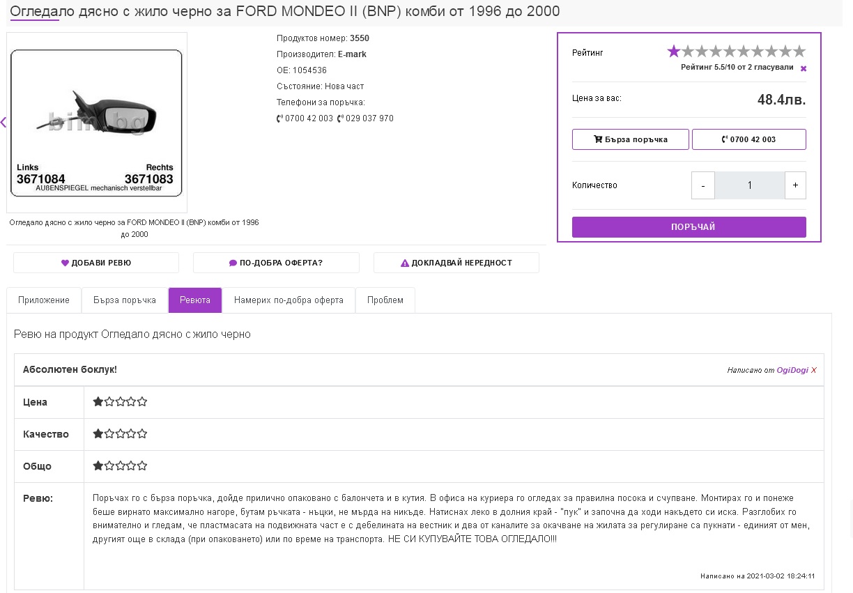 Купих си вчера огледало от www.avto.bim.bg - АБСОЛЮТЕН БОКЛУК!