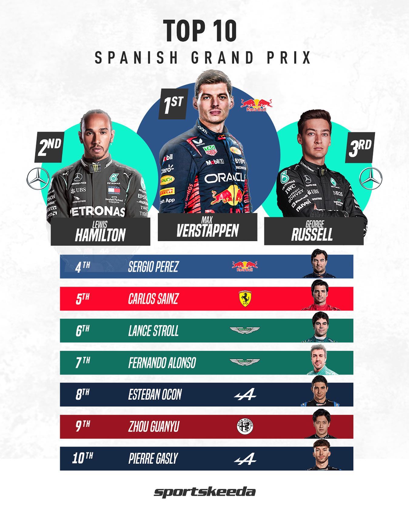 Опорочиха и това състезание неграмотните комисари, и лишиха Ф. Алонсо от заслуженото си трето място. Дж. Ръсел намаза третото място.